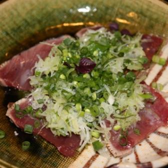 ≈ Sashimi/Sushi ≈ :a Japanese dish of thinly sliced raw fish / cold rice dressed with vinegar and garnished especially with bits of raw seafood |